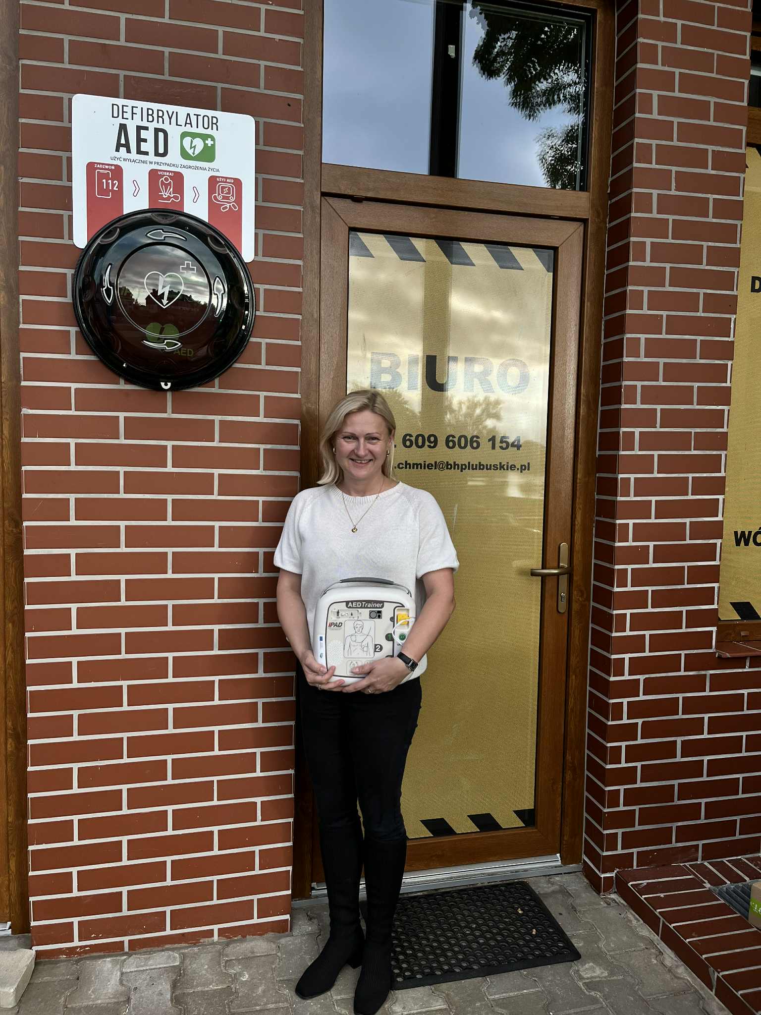 Defibrylator ufundowała firma BHPlubuskie.pl Anna Chmiel. Urządzenie jest więc zamontowane tuż przy wejściu do biura przy ul. Strzeleckiej 13. – Przeprowadzam szkolenia BHP i w programie jest pierwsza pomoc. Mam defibrylator szkoleniowy, pokazuję uczestnikom szkolenia, jak z niego korzystać. Ale to niewiele da, jeśli defibrylatorów nie będzie więcej w przestrzeniach ogólnodostępnych – mówi Anna Chmiel.